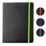 Con tapa papel vinílico con cierre elástico. Con 72 hojas de papel 80grs.