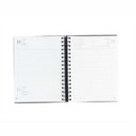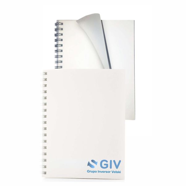 En polipropileno, con anillado. Con 168 hojas de papel 70grs.