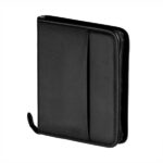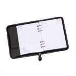 Con tapa en eco-cuero con cierre, con bolsillo interno y con mecanismo de 6 anillas. Con 168 hojas de papel 70grs.