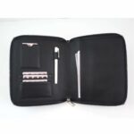 Con tapa con cierre, con bolsillo interno y externo con cierre y con mecanismo de 6 anillas. Con 168 hojas de papel 80grs.