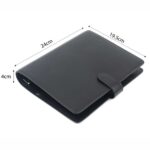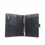 Con tapa en eco-cuero con presilla, con bolsillo interno y con mecanismo de 6 anillas. Con 72 hojas de papel 80grs.