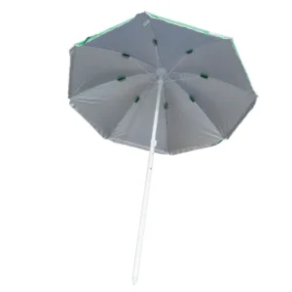 La Sombrilla Spinit está diseñada con armazón de acero de 30 mm de diámetro y con la cobertura de Poliéster Oxford 210D impermeable, con interior silver y filtro UV50, Con el sistema de quiebre permite ajustar fácilmente la inclinación, adaptándose a la posición del sol para una protección continua. Práctica y funcional, se pliega a solo 112 cm, lo que facilita su transporte en la bolsa de tela con cierre de velcro incluida. A pesar de su tamaño, mantiene un peso liviano de 2,2 kg,