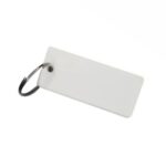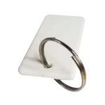 Para sublimar con aro metálico, en forma rectangular, color blanco.