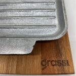 Bifera de aluminio, Poncho Pampa, con base de madera elaborada en eucalipto reforestado de gran durabilidad y baja porosidad, curada con aceite mineral, fabricada en listón corrido, pegada y prensada, esto evita que se arquee.