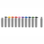 Podes elegir el color del cuerpo de la botella entre blanco, negro o plateado. También el color de las tapas entre negro, verde, azul marino, azul francia, violeta, rosa, rojo, naranja, amarillo, gris o plateado.