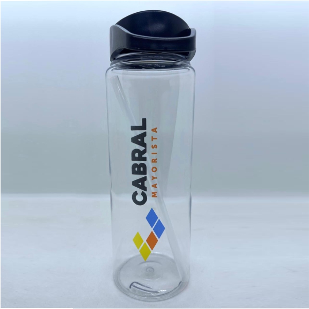 Reutilizable, BPA free de cuerpo translúcido o de color. Contiene pico rebatible que al tener cerrado imposibilita la salida de líquidos.