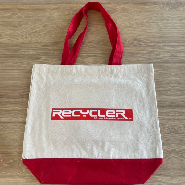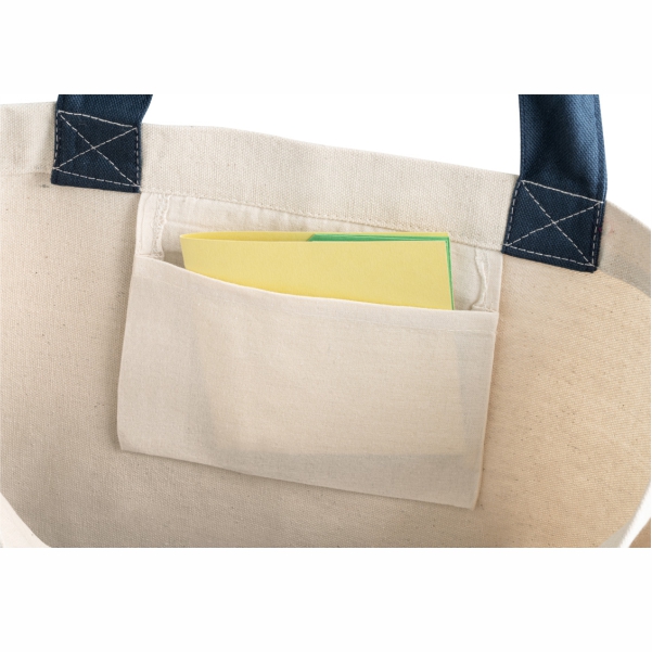 Bolsa fabricada 100% en lona de algodón (280g/m2). Con bolsillo interior y asas de 65cm.
