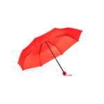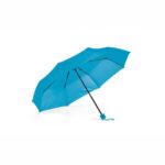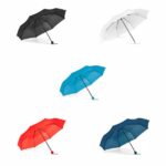 Diseño y tamaño ideal para transportar, posee correa para colgar, mango de plastico de color. Incluye funda mismo color. De 8 gajos de estructura en 3 partes metálica, botón de bloqueo, apertura manual. Poliéster 190T