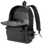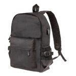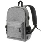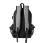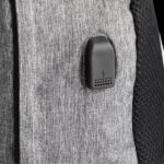Porta notebook hasta 15″ con conexión externa de USB. Espalda acolchada, bolsillo al frente, amplio compartimiento. Poliéster