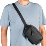 Fabricada en poliéster reciclado 600D. Cuenta con 1 compartimento principal y 1 bolsillo frontal.