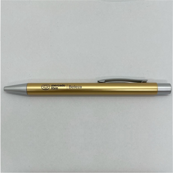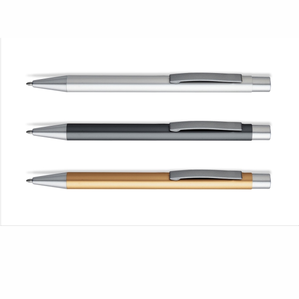 Bolígrafo retráctil, fabricado en aluminio. Cuenta con acabado mate. Tinta azul.