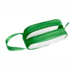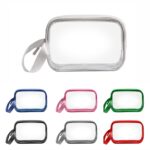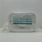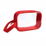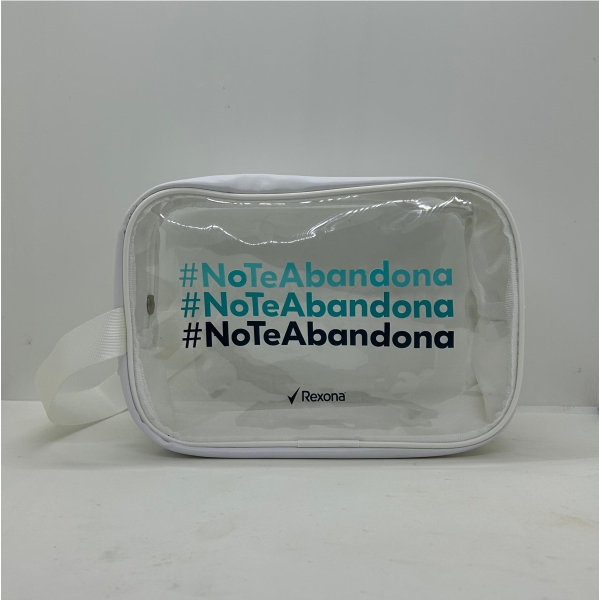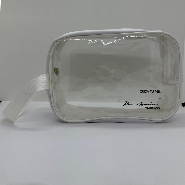 Fabricado en PU de color y en PVC transparente. Cierre y asa para transportar de color a tono.