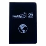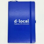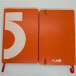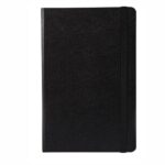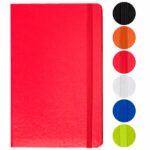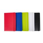 A5 con separador de tela, cierre elástico de color y bolsillo interior. Tapa dura encuadernado lateral. Contiene 80 hojas rayadas color marfil.