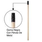 Incluye en la parte superior una goma negra recubierta por una férula de metal del mismo color. Tiene una graduación HB y se entrega sin punta.