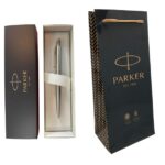 Se entrega en estuche y bolsa, ambos originales de la marca Parker.