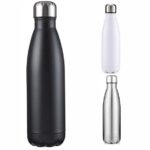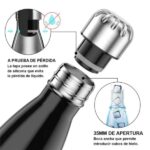 De acero inoxidable 304 doble capa. Con tapa con anillo de silicona. Boca ancha de 35 mm.
