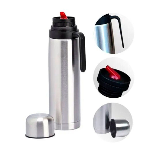 Certificación: INAL y Libre de BPA. Pico vertedor antigoteo y Media manija ergonómica, diseñado para mantener bebidas calientes por 12 horas o frías por 24 horas