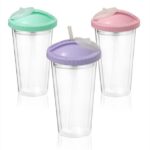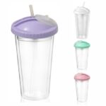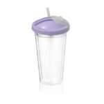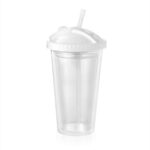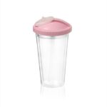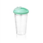 Con sorbete rebatible antiderrame. Libre de BPA. Lavar a mano, no usar en microondas.