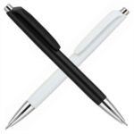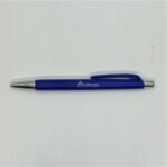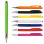 Bolígrafo plástico retráctil, cuerpo de color y detalles cromados.