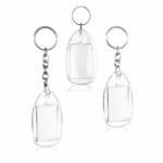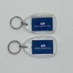 Llavero plástico, con espacio rectangular para insertar publicidad.