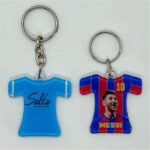 Llavero plástico con forma de camiseta.