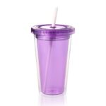 Cuerpo translúcido con interior del mismo color que la tapa. Libre de BPA. Lavar a mano, no usar en microondas.