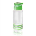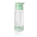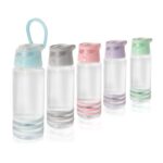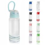 Con cierre hermético y manija rebatible. Cuerpo cristal y tapas en colores combinados con el grip.