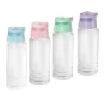 Con cierre hermético y manija rebatible. Cuerpo transparente y tapas en colores combinados.