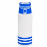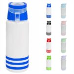Con cierre hermético y manija rebatible.  Cuerpo blanco, grip y tapa de color.