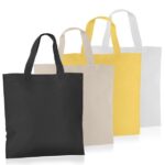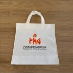 Con manijas. Fabricada en tela no tejida (Friselina) de 80g, termo sellada por ultrasonido. 100% reciclables. Manijas que soportan hasta 24 kilos.