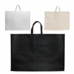 Fabricada en tela no tejida (Friselina) de 80g, termo sellada por ultrasonido. Manijas que soportan hasta 24 kilos. 100% reciclables.