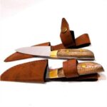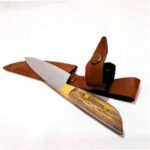 De Acero Inoxidable 420, con Madera Guayubira, con vaina en Eco Cuero y costura en Hilo Nylon.