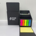 Post-its de 5 colores de 1,2 x 4,5 cm y 50 notas autoadhesivas de 7,5 x 5 cm.