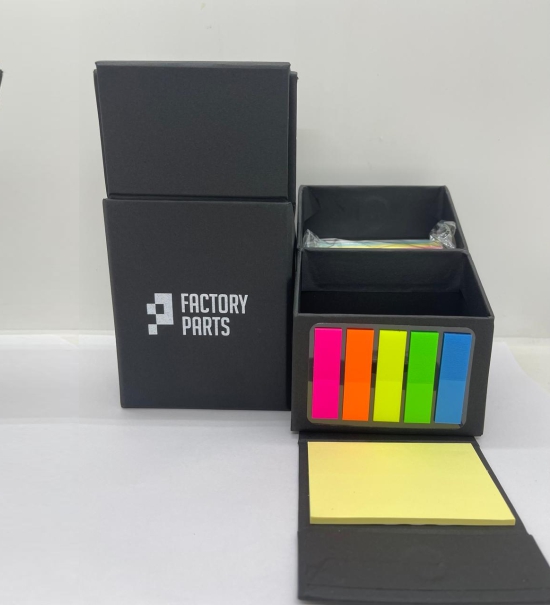Interior con block de 400 hojas de papel de 4 colores de 7,5 x 7,5 cm.