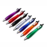 Cuerpo acrílico formato silueta con detalles metalizados y clip metálico. Mecanismo de apertura retráctil. Tinta negra.