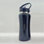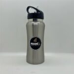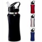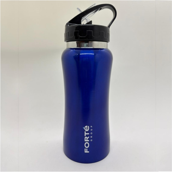 Botella deportiva material Acero Inoxidable AISI 304. Producto aprobado por INAL. Con pico rebatible tipo sorbete y cierre hermético. Con manija en la parte superior para fácil agarre