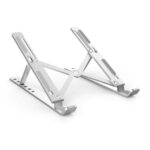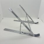 Realizado en aleación de aluminio 4 mm de primera calidad, resistente soporta hasta 5 kg de peso parte superior, regulable en 6 posiciones. Compatible para notebook de 10 a 15,6″. Posee almohadillas de silicona antideslizante 4 en la parte superior e inferior del soporte y 2 alfombrillas de goma en el gancho. Su diseño permita un correcto flujo de aire para enfriar la computadora.