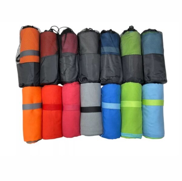 Toallon Microfibra Ultra Compacta. Colores disponibles: Azul con ribete celeste, Celeste con ribete verde, Rojo Salmon con ribete gris, Verde con ribete celeste, Gris con ribete negro, Naranja con ribete gris, Gris con ribete Gris, Negro con ribete negro.