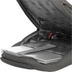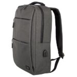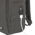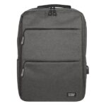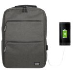 De polyester Wulong 300D Hidrofugo. Compartimento principal con cierre y bolsillo portanotebook para 17¨y bolsillos organizadores de accesorios. Dos bolsillos frontales con cierre y un bolsillo lateral. Puerto USB exterior con conector interior para bateria. Correas ajustables y espalda acolchonadas. Tiradores de cierre engomados. Presencia de marca al frente y en su interior.
