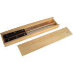 Juego de cuchilla y tenedor en caja de madera