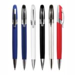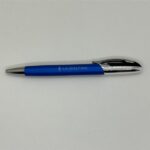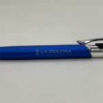 Bolígrafo con clip metálico y cuerpo en aluminio opaco. Pulsador y puntera plásticos color plata brillante. Tinta negra.