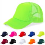5 gajos. Frente de color con parte trasera con tela red de color al tono. Ajuste con broche plástico. Seis costuras 17,5 x 7,5 cm.