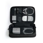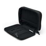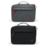 Contiene porta accesorios con dos compartimentos acolchados individuales y divisiones internas. Cuenta con un bolsillo delantero, espacio para guardar tablet y manija de agarre para transportar.
