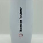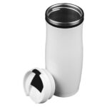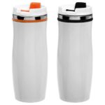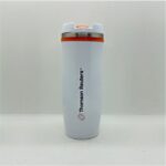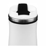 Vaso/jarro de acero inoxidable blanco con detalles en color. Diseño de doble pared.