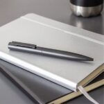 Cuerpo metálico negro mate. Clip del mismo color. Apertura giratoria. Tinta negra.