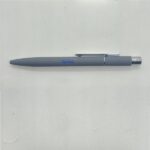 Cuerpo de aluminio, acabado engomado en diferentes colores. Bolígrafo retráctil. Clip, pulsador y anillo metálicos color plata. Tinta negra.