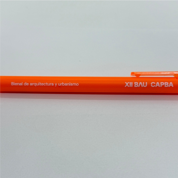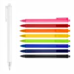 Bolígrafo retráctil de plástico ABS. Cuerpo de diferentes colores acabado mate. Pulsador, clip y puntera translucidos del mismo color del cuerpo.