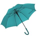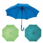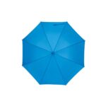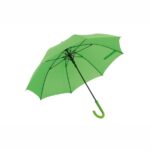 De Poliéster. Bastón metálico, varillas en fibra de vidrio, puntas metálicas y mango curvo de plástico. APERTURA AUTOMÁTICA. Con cierre de velcro.