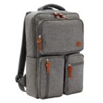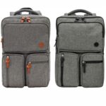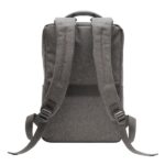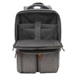 Confeccionada en Poliéster 600D Bicolor + Nylon + PU. Mochila porta notebook de hasta 15,6 pulgadas. Compartimento principal con bolsillos acolchados para notebook y tablet con cinta elástica de velcro. 3 bolsillos delanteros con cierre y 2 bolsillos laterales. Manija y correas acolchadas, hebillas plásticas y cierres metálicos con tiradores en PU. Espalda acolchada. Incluye tira para sujetar la mochila en la manija extensible de un equipaje de mano.