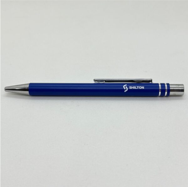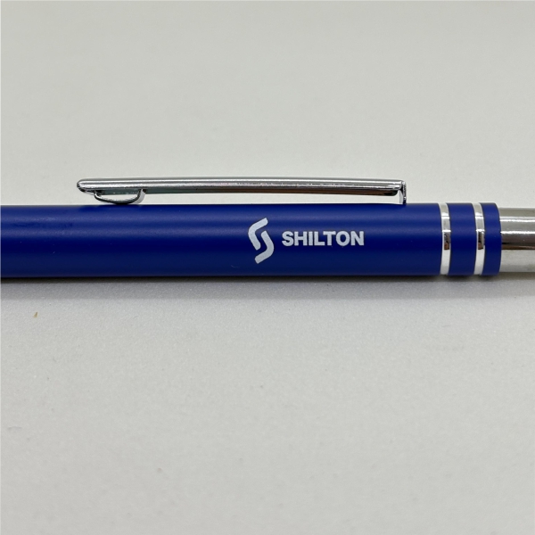 Bolígrafo retráctil de aluminio, ABS y acero, con tinta gel negra. Cuerpo metálico en diferentes colores con acabado mate. Clip metálico, puntera y pulsador metálicos.
